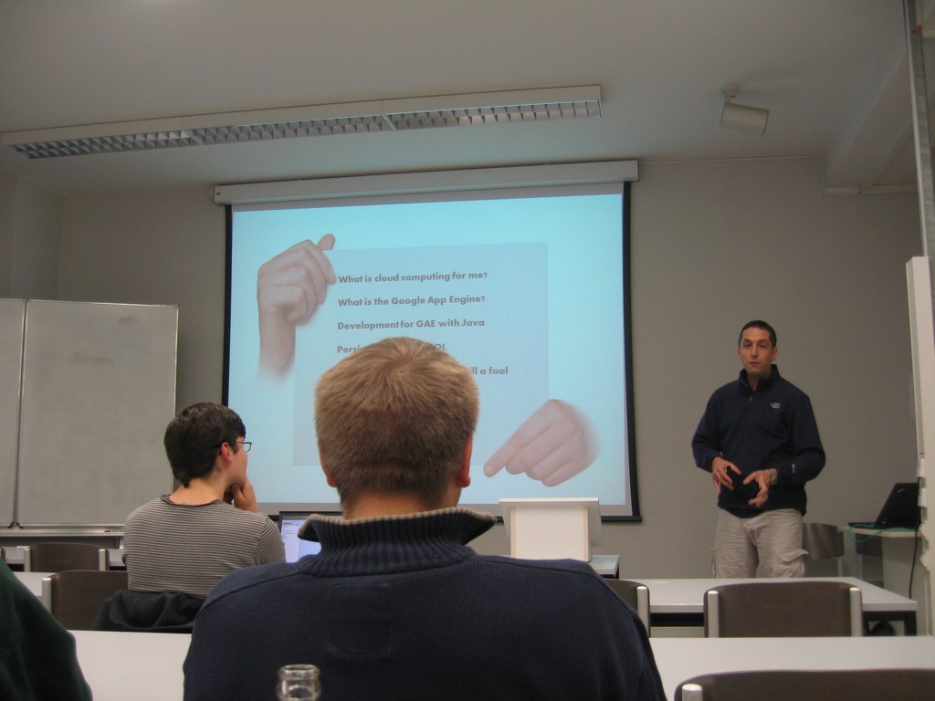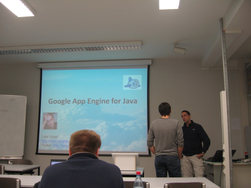 Am Mittwoch war es wieder soweit. JUG-DA in Darmstadt. Lars Vogel (http://www.vogella.de) war in Darmstadt bei der JUG-DA und hat einen wirklich guten Vortrag zum Thema Google AppEngine gehalten. Er schreibt nicht nur super Tutorials, sondern hält auch klasse Vorträge. Der Vortrag war sehr informativ und man hat eine gute Übersicht bekommen, was mit der AppEngine möglich ist und was dahinter steckt.