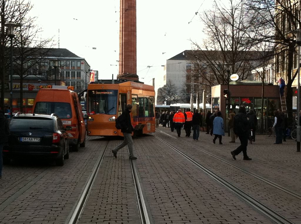 Straßenbahn entgleist… Veröffentlicht am 14. Januar 2011 von hameister Da ist wohl am Luisenplatz in Darmstadt eine Straßenbahn entgleist. Sieht schon merkwürdig aus, wenn so ein Ding neben den Schienen steht. Hier gibt es noch mehr Informationen.