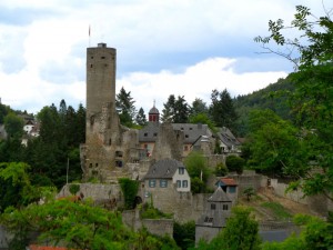 Blick auf die Burg in Eppstein (links) und der Kaisertempel in Eppstein (rechts)