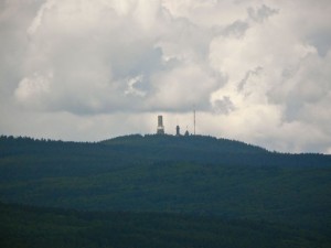 Vom Großen Mannstein hat man eine gute Sicht auf den Feldberg (links) und rechts die Aussicht vom Kaisertempel auf Eppstein und im Hintergrund Bremthal.