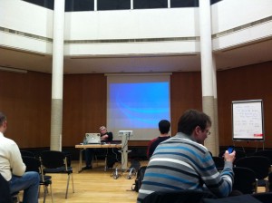 Der Vortrag war wirklich sehr gut und auch unterhaltsam. Interessant war auch der Vortragsstil. Er hatte zwar sein Notebook mitgebracht und es gab auch einen Beamer, aber er hat die 5 Prinzipien ausschließlich auf einen Flip-Chart erklärt. In einer solchen Form habe ich das bisher auch noch nicht gesehen, aber es war wirklich gut.