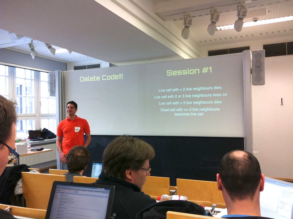 Vielen Dank an die Organisatoren der Veranstaltung! Es hat wirklich viel Spass gemacht, den ganzen Samstag mit gleichgesinnten Software-Entwicklern zu verbringen und Game of Life zu programmieren.