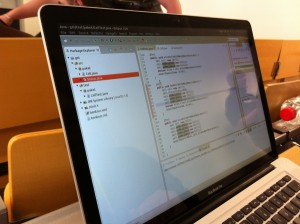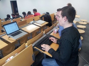 Marcel hat erstmal erklärt was ein Coderetreat ist und wie der Tag ablaufen wird. Ist schon interessant, dass man im Laufe des Tages sechs mal das „gleiche“, jeweils in Zweierteams, programmieren soll. Was sich allerdings ändert sind die Partner und die Randbedingungen. Randbedingungen können TDD, keine if-Anweisungen, keine Schleifen, keine Mouse, keine primitiven Datentypen oder Methoden mit maximal 4 Zeilen sein. Mein Favorit war Evil-Pair. Einer schreibt einen Test und der andere schreibt den Programmcode und darf nachdem der Test „grün“ ist, seinerseits einen Test schreiben, den der Partner dann zum erfolgreichen Durchlaufen bringen muss.