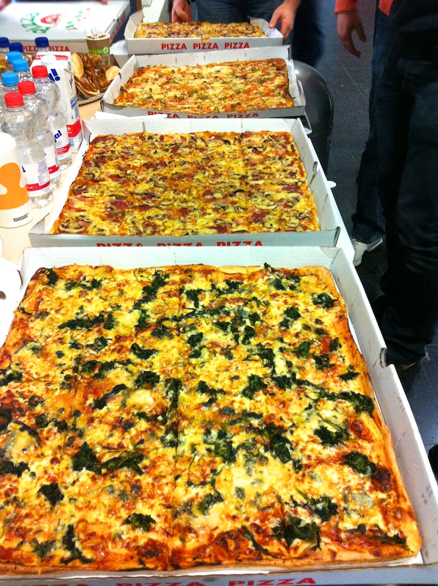 Nach drei Sessions gab es um 12:30 Uhr Mittagessen. Informatiker-Nahrung – Pizza :-)