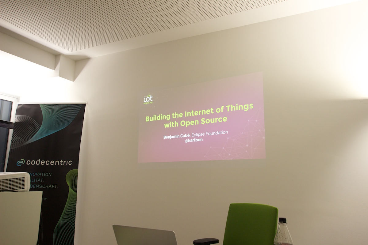 At the 15th Iot-Meetup in Frankfurt (codecentric), there were two talks this time. In the first talk, Benjamin Cabé presented various projects related to Eclipse IoT and architecture. In the second talk, Julian Arndts talked about the ethical and philosophical component of IoT and computer technology.