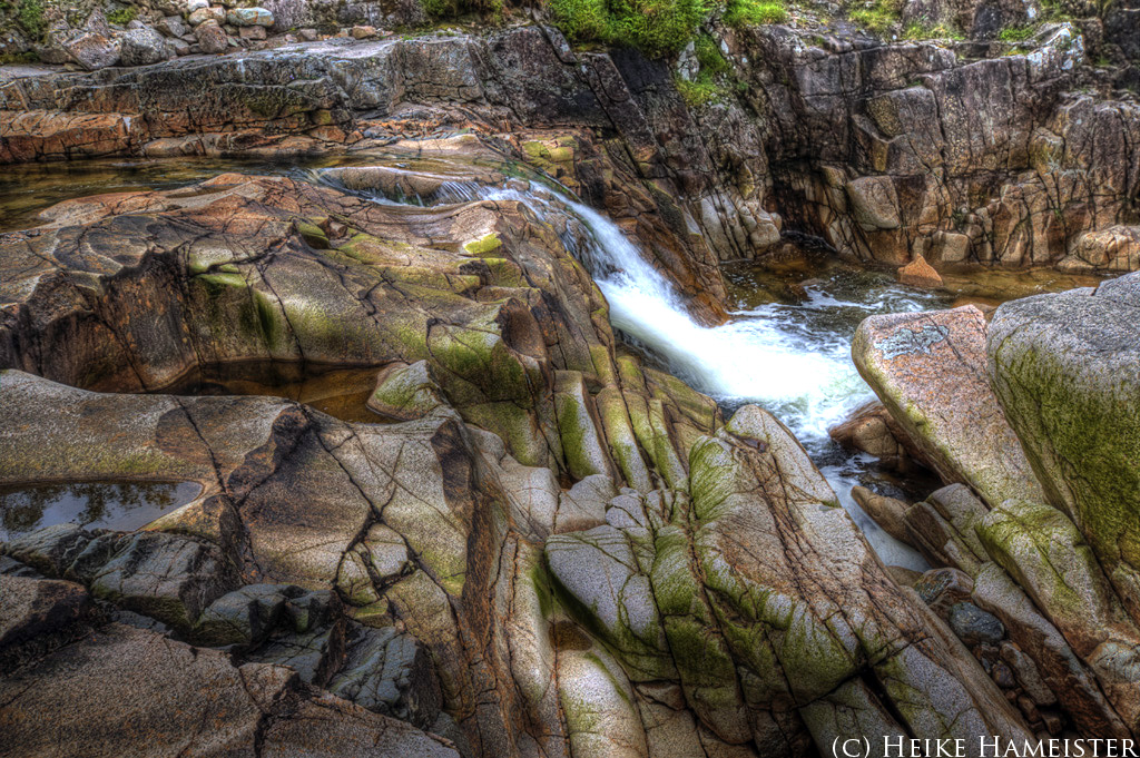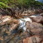 The River Etive rises on the peaks surrounding Rannoch Moor and from the Kings House, the Etive flows for about 18 km, reaching the sea loch, Loch Etive. A narrow road runs down the glen and ends at the head of the loch, though rough tracks continue along both shores. The river is one of Scotland’s most popular and challenging kayaking runs. It provides a multitude of solid Grade 4(5) rapids with a variety of falls and pool drops.
