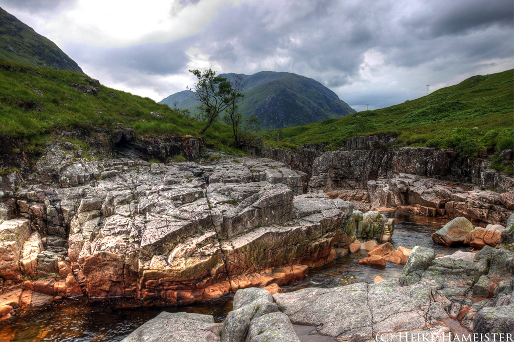 Glen Coe is one of the most spectacular and beautiful places in Scotland (in my opinion…) and is surrounded by wild and precipitous mountains. Most of the Glen is now owned by the National Trust for Scotland and the nice visitor centre displays the natural and historical significance of the glen. Glen Coe is a very popular tourist destination: partly because of its scenic qualities and attraction for walkers and climbers.