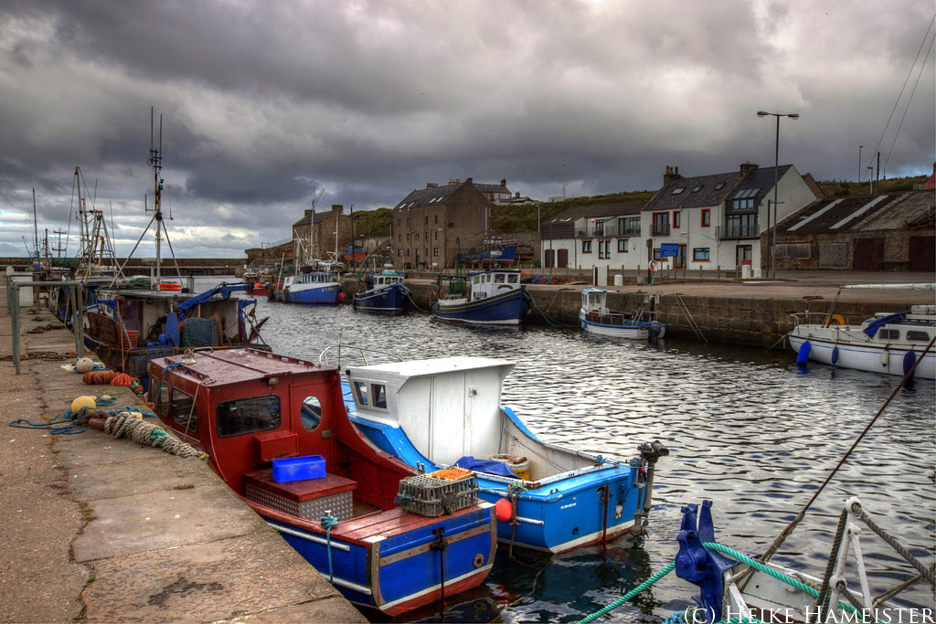 Burghead is a small town about 13 km north-west of Elgin, Scotland. The town is mainly build on a peninsula and has sea on three sides. It was built between 1805 and 1809 and the harbour is mainly used by fishing boats.