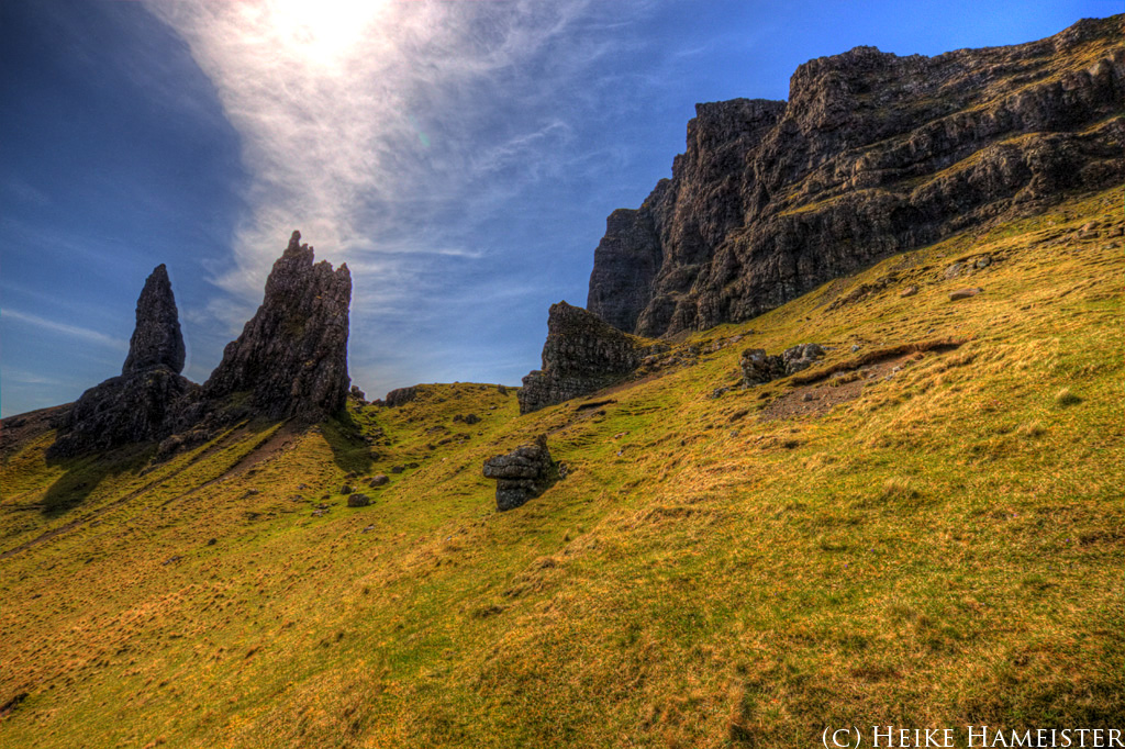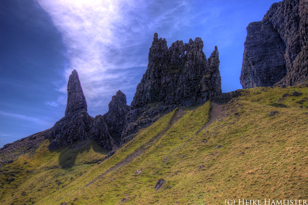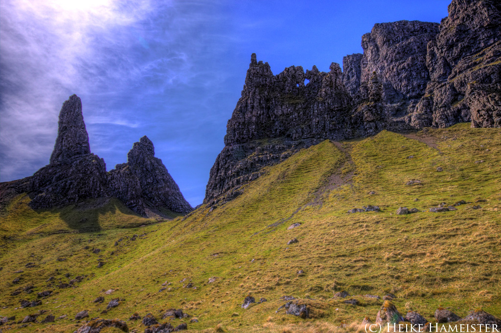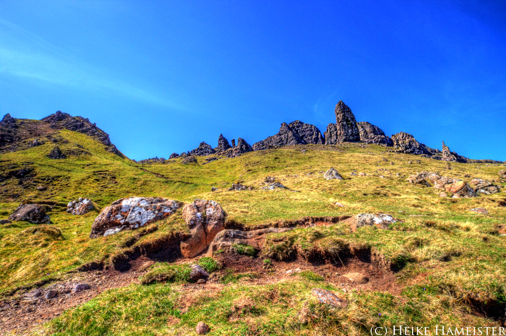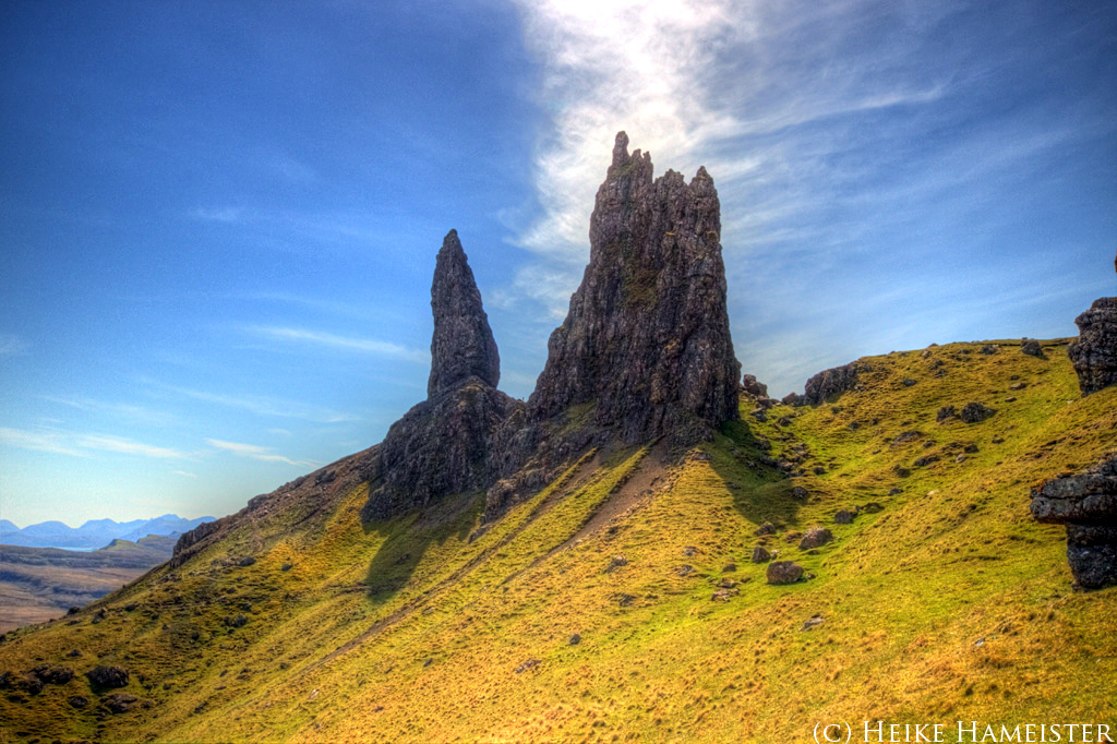 The Storr is a rocky hill and presents a steep rocky eastern face. The area has a number of weirdly shaped rock pinnacles, the remnants of ancient landslips. One of the most famous of these is known as the Old Man of Storr.