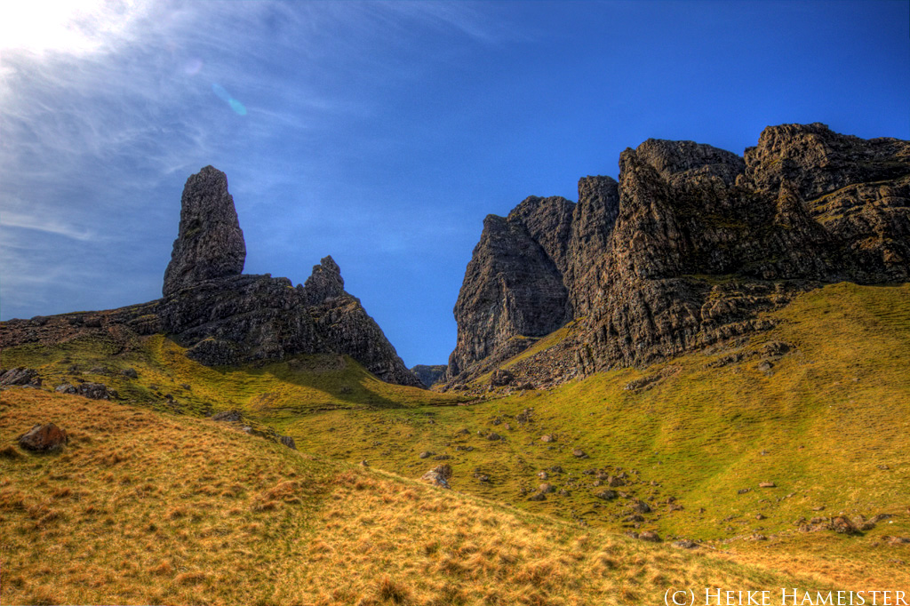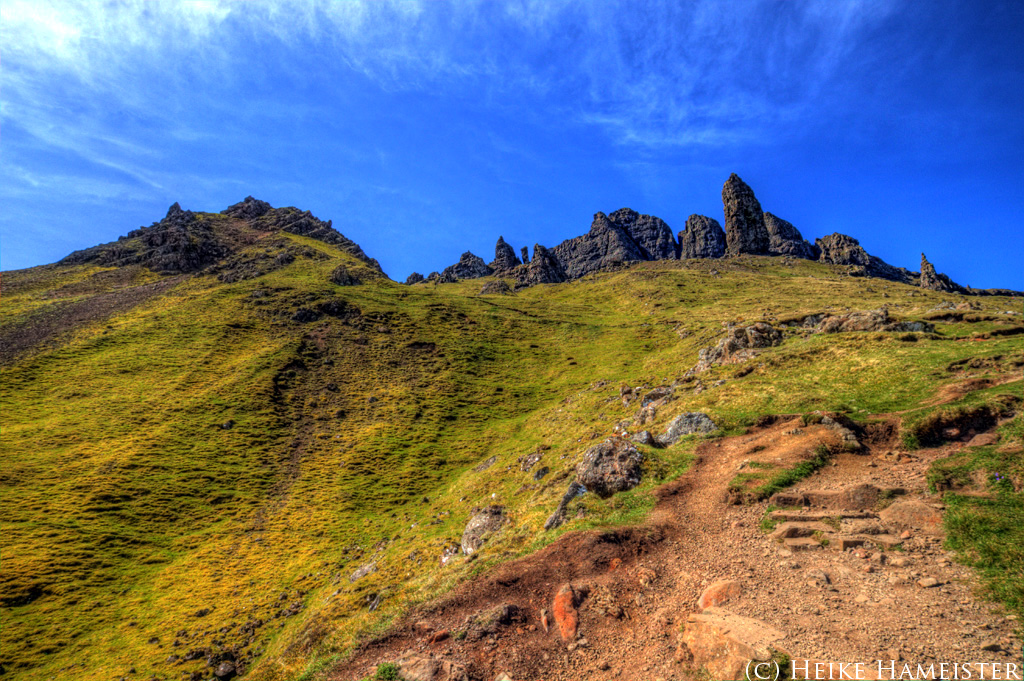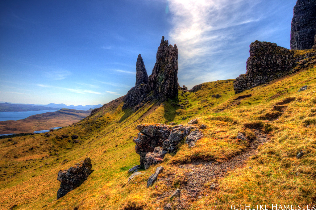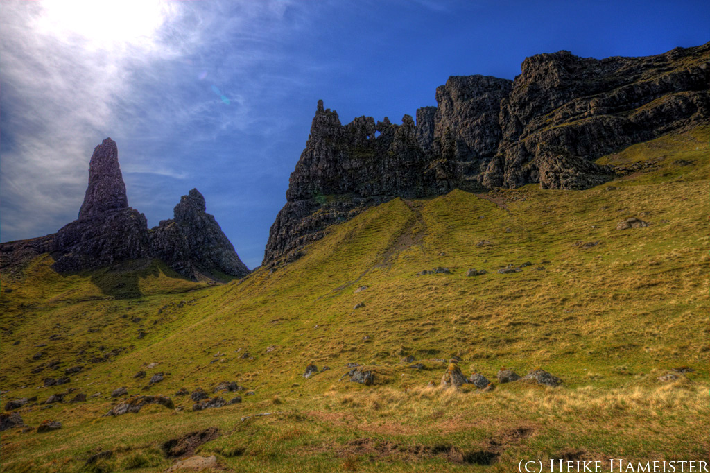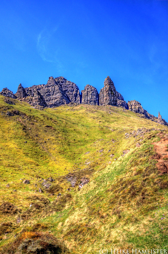 The Storr is a rocky hill and presents a steep rocky eastern face. The area has a number of weirdly shaped rock pinnacles, the remnants of ancient landslips. One of the most famous of these is known as the Old Man of Storr.