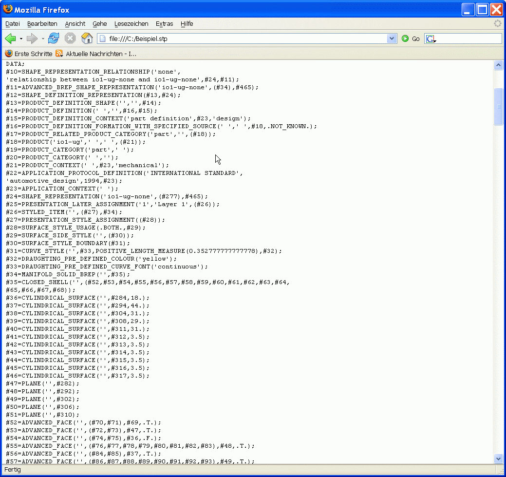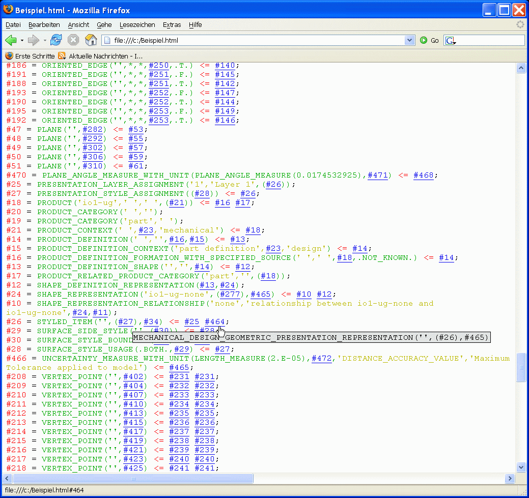 Der zweite Screenshot zeigt eine Step-Datei, die mit step2html transformiert wurde. |